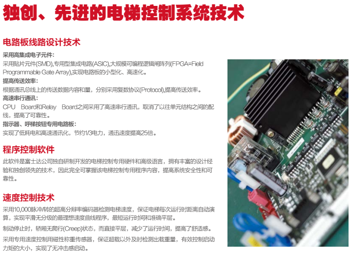 引进先进最新控制技术,采用现代新材料加工工艺制造,在运行品质、安全功能、轿厢造型设计、节能降耗等方面均有最完美的表现,电梯的流光溢彩诠释着建筑的尊贵典范。